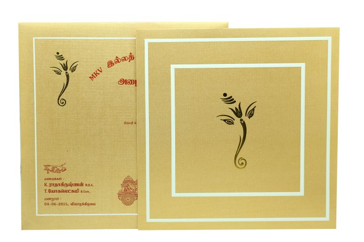 | Description | Solid gold tint with white border in the card & cover in the center fancy ganesha in gold foil |