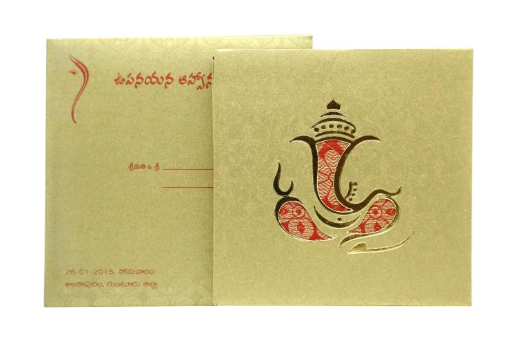 | Description | Box type gold card 7 cover with ganesha with dye cutting and with gold foil |