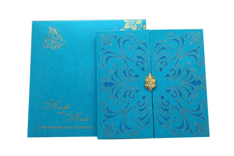 | Description | Blue type card & cover it's a center open card in that small ganapathy sticker |